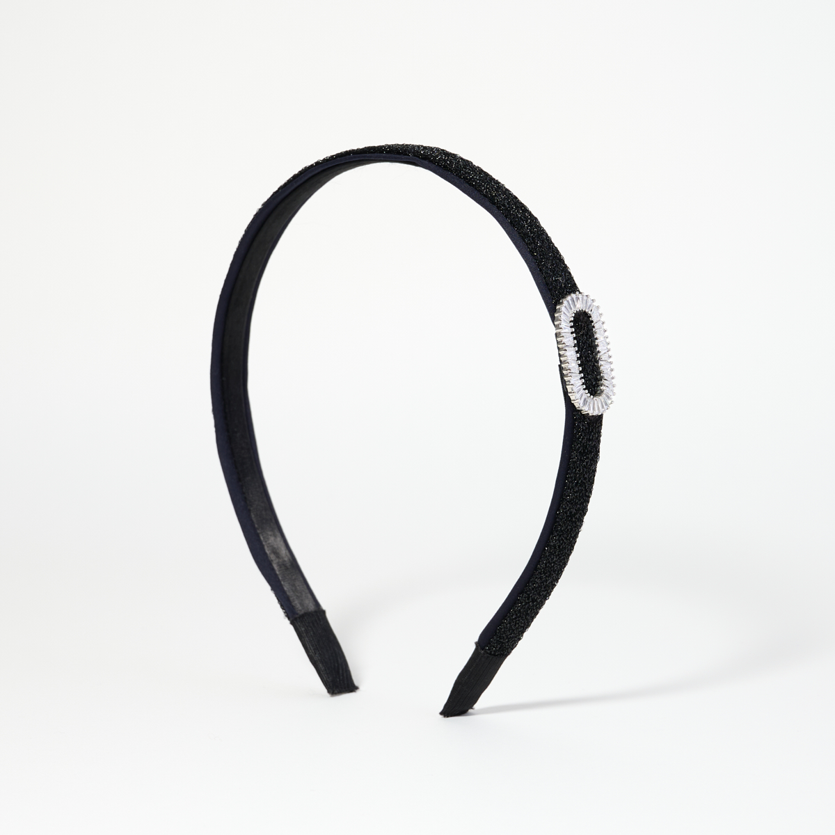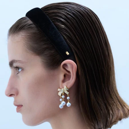 オーバル型のビジューがきらっと光るカチューシャは、ロイヤル感もありつつも大きすぎないモチーフのため、子どもが主役のハレの日に華を添えるのにぴったり。ワンポイントの位置も絶妙で、式当日バタバタの朝も身につけるだけで自信が持てる横顔に!
