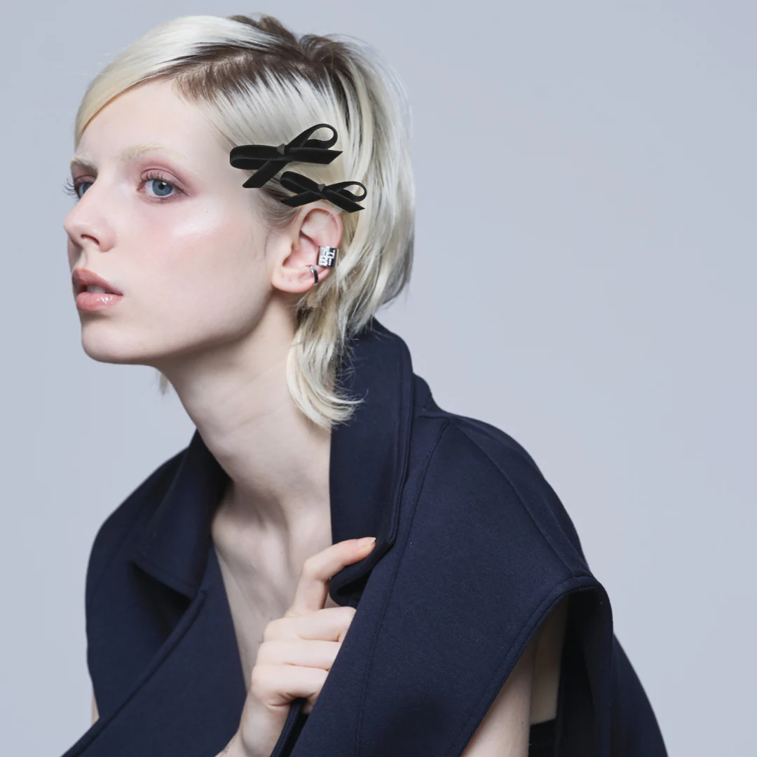 ボブにぴったりな小さめリボンのクリップ2個セットは、フロントやサイドの髪を留めるほかにも、ハーフアップや編み込みのアクセントにも使える優れもの! ワンタッチで着用でき、金具は左右対称のため髪のどちら側にもつけやすい作りになっています。軽量のため、重みで落ちにくいのもうれしい。