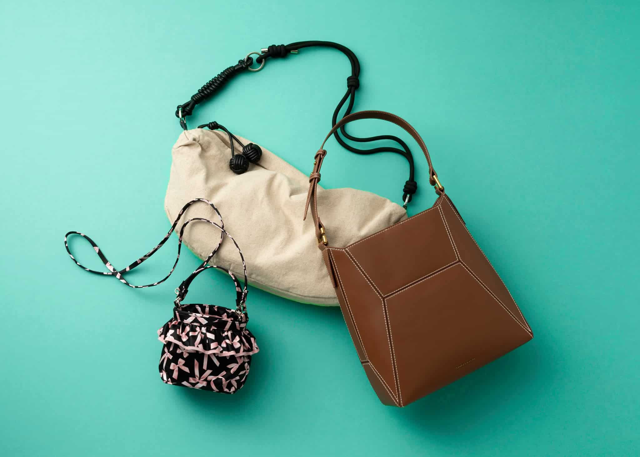 3点ともそれぞれ3万円以下と手が届きやすいプライスが嬉しい。リボン柄のポシェット、きちんと見えるレザーのワンショルダー、軽くて持ちやすい麻素材のビッグバッグ、とそれぞれがキャラ立ちしているので、この3点さえあればどんなコーデにも対応可能な、神セットです!