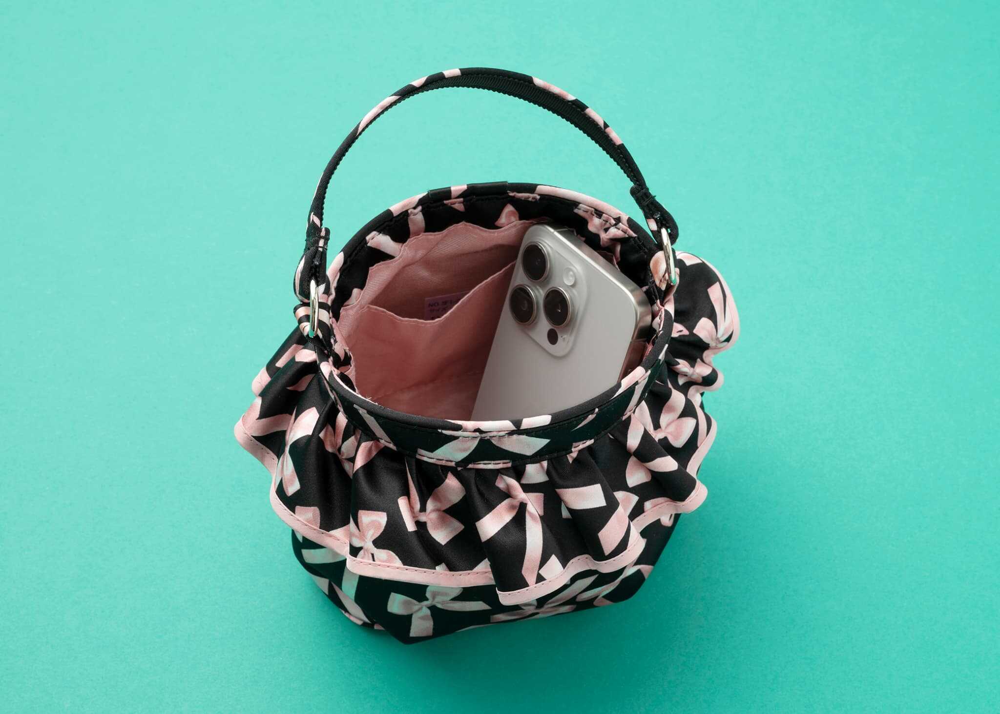 持っているだけでココロが浮き立つキャッチーなリボン柄とフリル使いに胸キュン♡ トレンドのバケツ型でコロンと可愛い見た目以上にモノが入るのでこのバッグひとつでフッ軽にお出掛けできます。