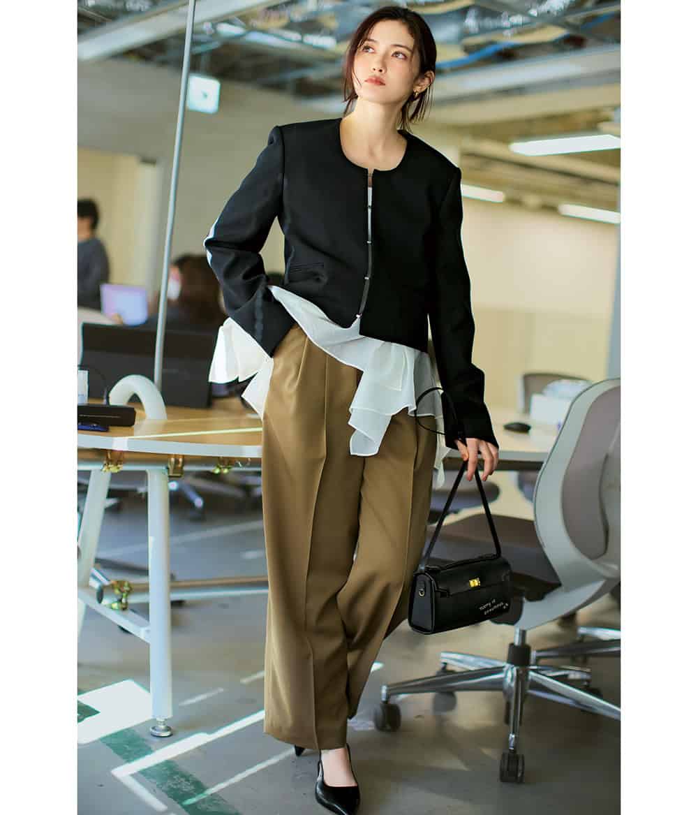 黒パンツに落ち着きがちなお仕事コーデ。でも、色やシルエットを変えるだけで、装いは即今どきに!上品さと合わせやすさを担保した、“黒パンツ以外”の通勤パンツコーデをご紹介します。