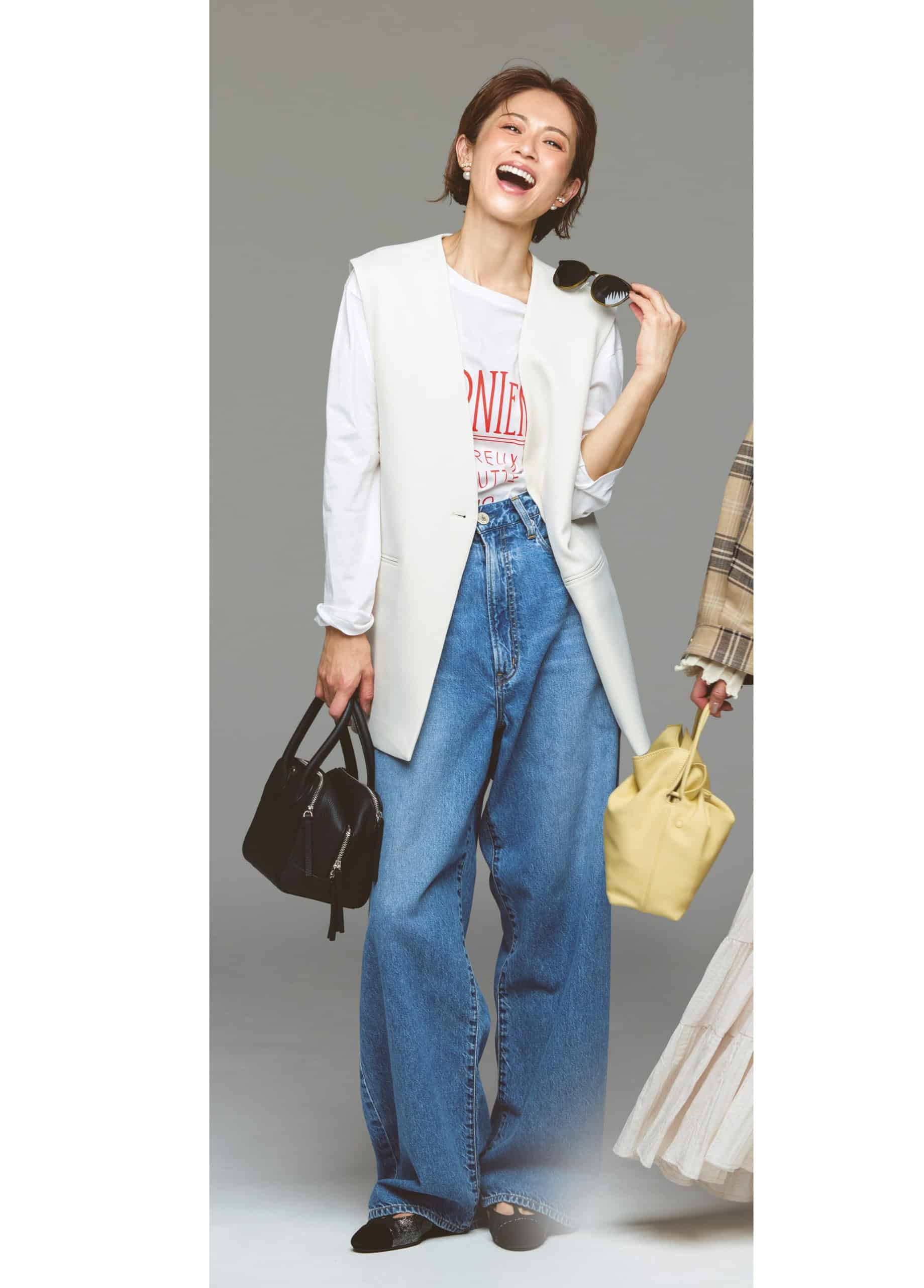 「ロゴT×デニムの物足りない感」もジレで一気に垢抜ける!