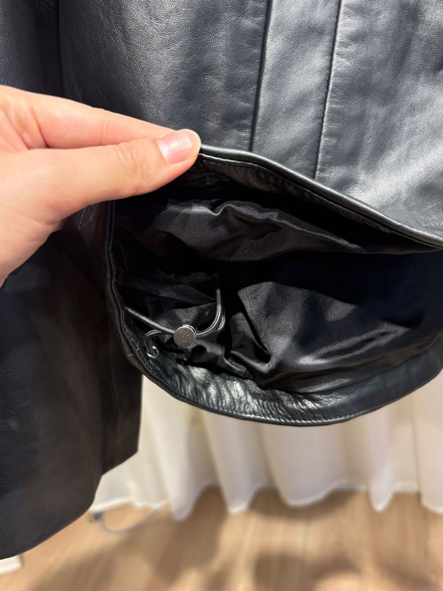 深めのネックラインがほどよい抜けを演出し、上品な印象へと導く一枚。柔らかなシープレザーを使用しているから、ハードな雰囲気が和らぎ、レザー初心者ママも気負わずに取り入れやすそう! ボトムスを選ばない着丈で、デニムからキレイめパンツやスカートまで幅広く着回せます。送迎や保護者会、通勤など好印象をキープしたいシーンが多い春のママに頼れるアイテムです。