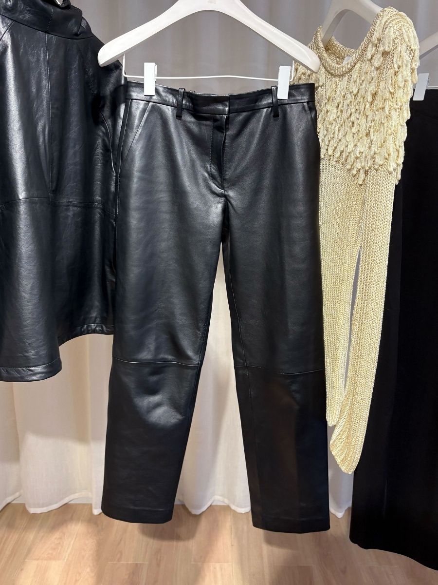 黒パンツ派ママに試してほしい! 定番の黒テーパード感覚で穿ける 端正なシルエットのレザーパンツ