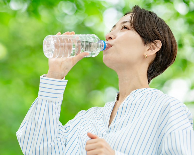 一度に大量に飲むのではなく、コップ1杯程度をこまめに飲むのが理想的。利尿作用のあるカフェインを含む飲み物よりも、水やノンカフェインのお茶がおすすめです。