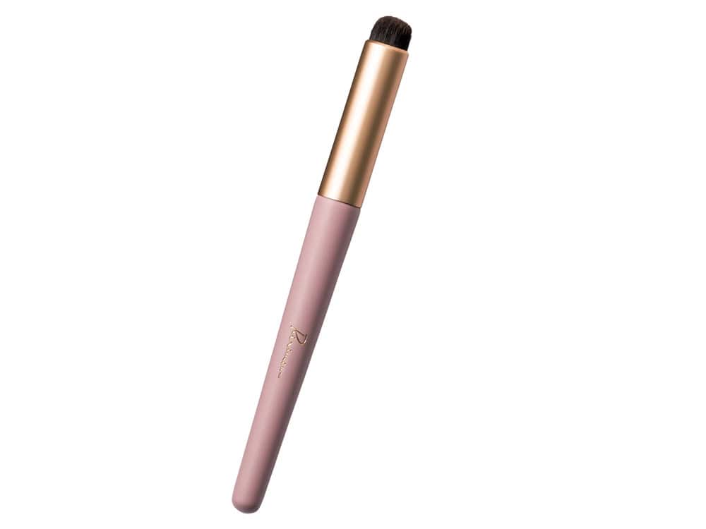 中央にリップを置き、リップ用ブラシで内側から外へなじませる。輪郭はあえて取らず、ふんわりぼかして。