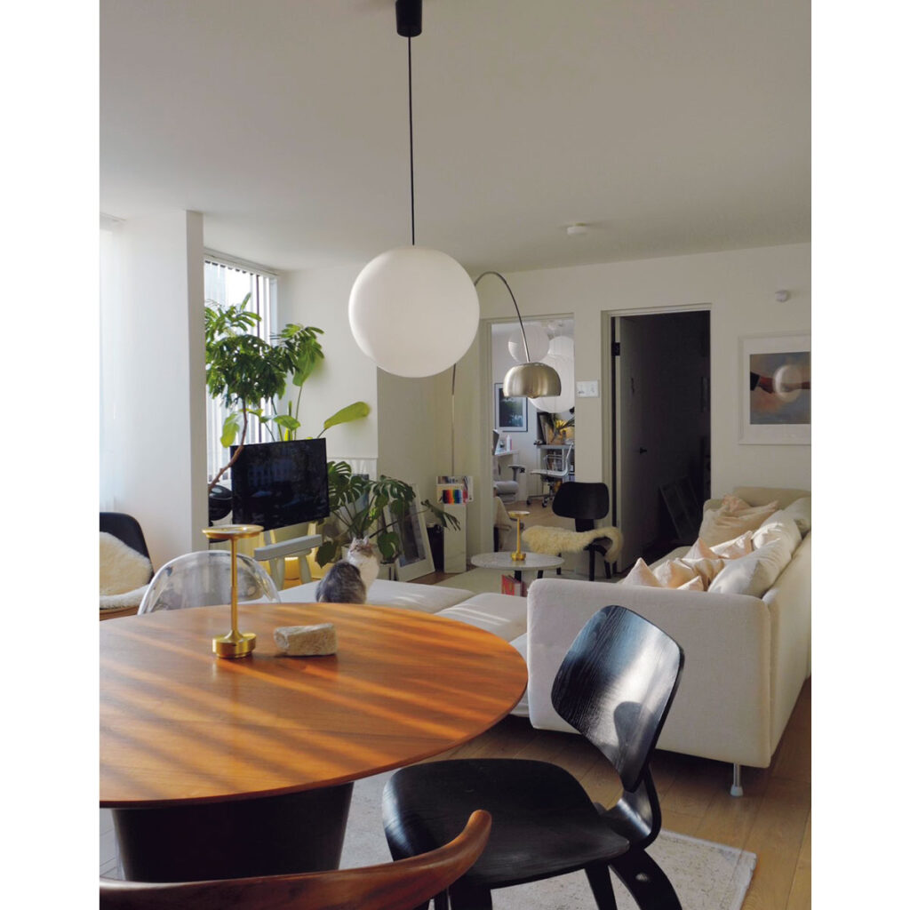 友人を呼んだ時に、家に入ってまず感じてほしいのは、緊張しない心地よさ。整っているのにどこか柔らかく、自然と腰を下ろしたくなる空気感を大切にしています。オシャレなアイテムはソリッドなデザインで冷たくなりがちですが、丸みのある形を取り入れることでバランスを調整。直線だけで構成せず、形のニュアンスで温度を足すことで、視覚的にも落ち着ける空間にしています。遊びに来た友人が気づけば長居してしまう、そんな距離感を大切にしています。インテリアは60〜70年代の名作家具を軸に、今の時代に手に入るIKEAやネットで購入したアイテムもミックス。未来の誰かがこの家を見た時に「2026年はこんな家づくりがよかったんだ」と感じてもらえるよう、その時の空気も残したいと考えました。色物を入れることで生まれる心地いい違和感や、ワクワクするアイテムもこの家らしさ。大人になって高価なものも選べる今だからこそ、ブランドで固めた家ではなく、若々しく、遊びのある住まいに。時間が経つほどに好きが増えていく空間です。