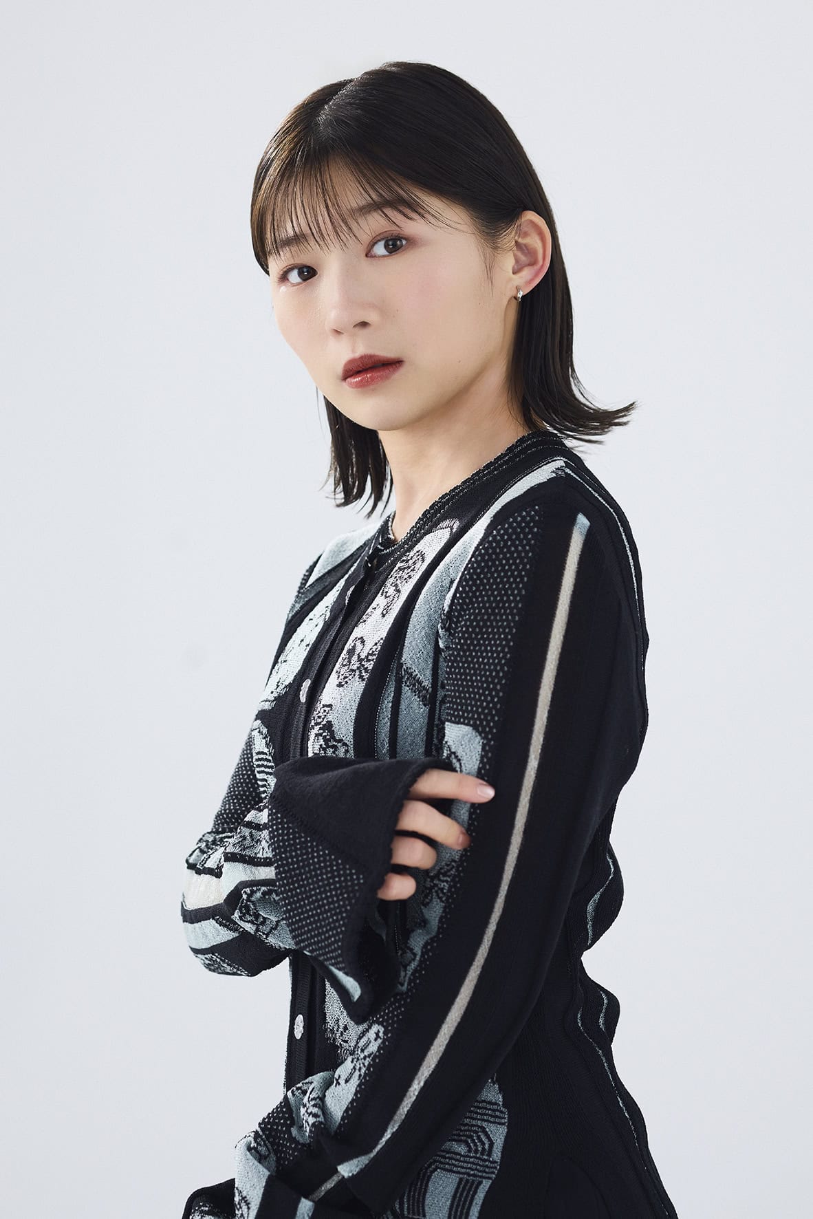 【伊藤沙莉さん着用衣装】ニット ¥74,800スカート¥61,600(Mame Kurogouchi / マメ クロゴウチ)イヤリング ¥8,800(Jouete/ジュエッテ)