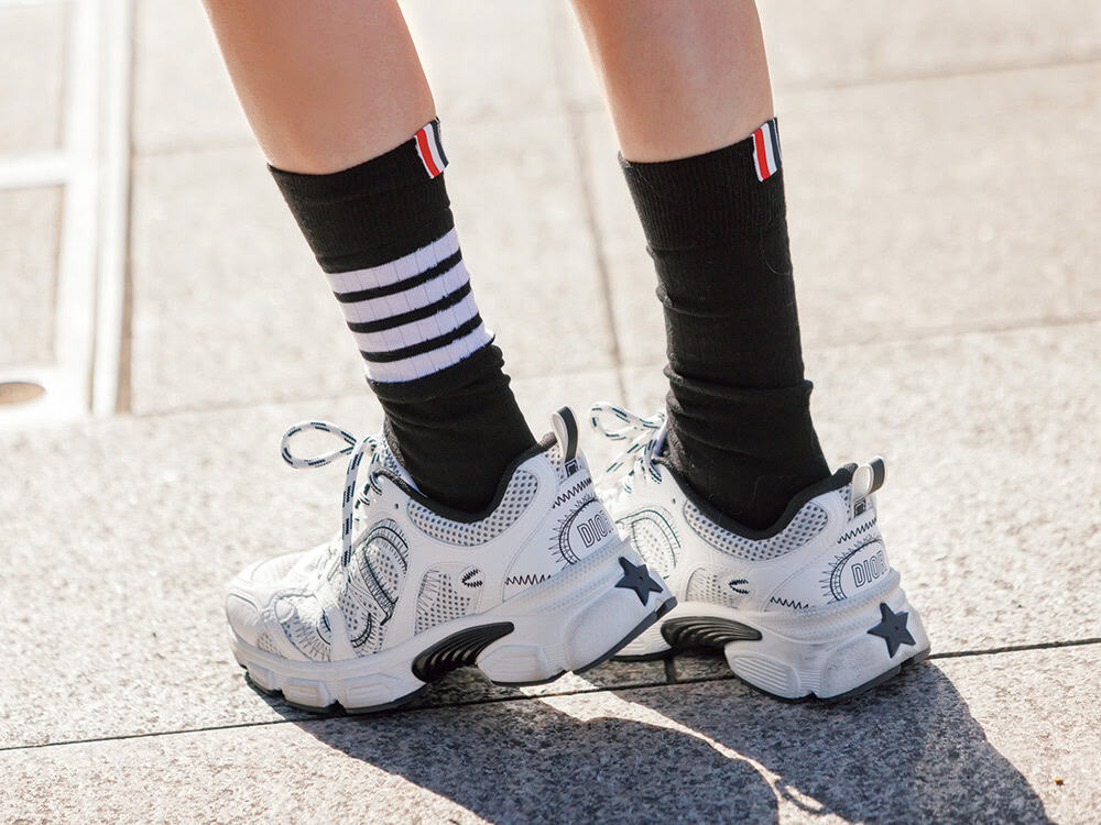 Diorのスニーカーはボリュームがあるので、ソックスはぴたっとすっきり見せるのが要。4BARが可愛いトム ブラウンのソックスは買って大正解。ジャケットとバッグは大きめでバランスを取ります。