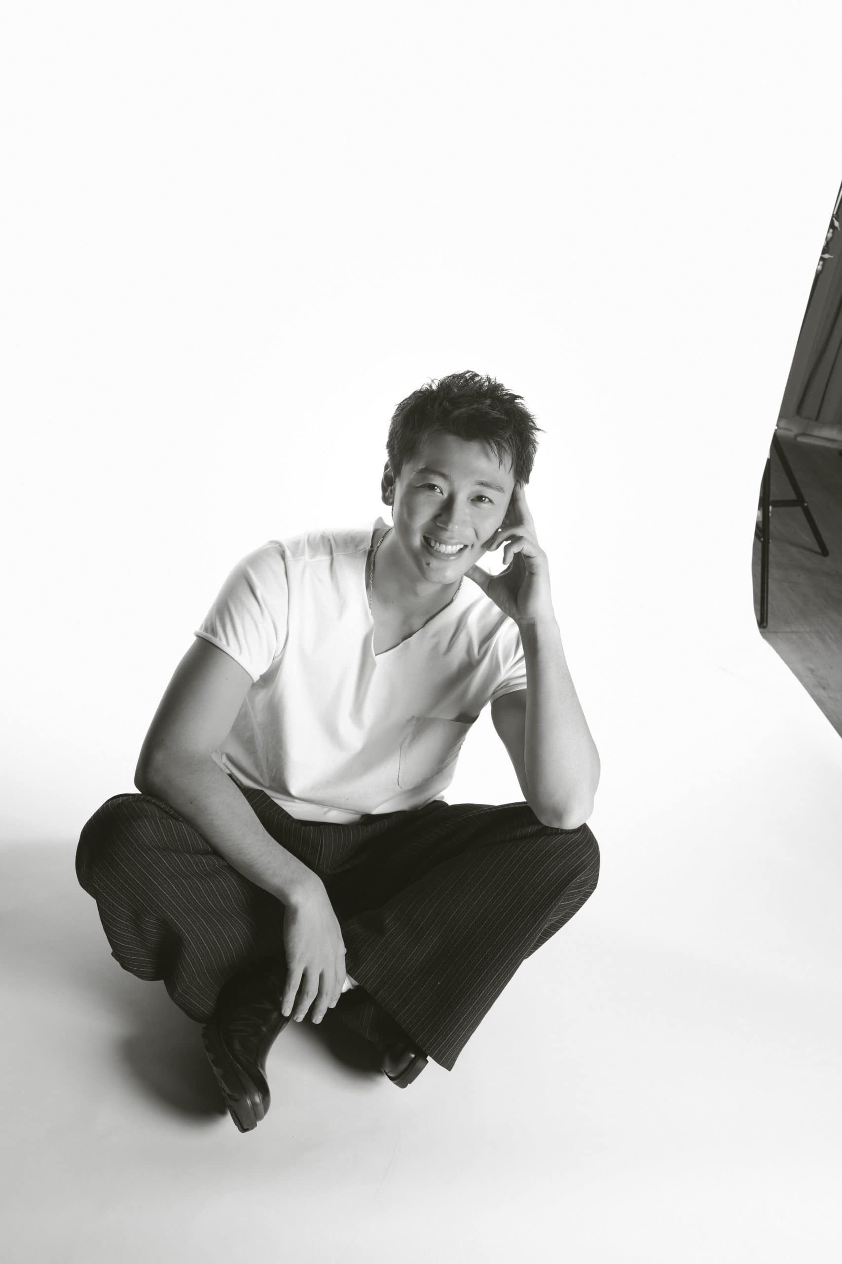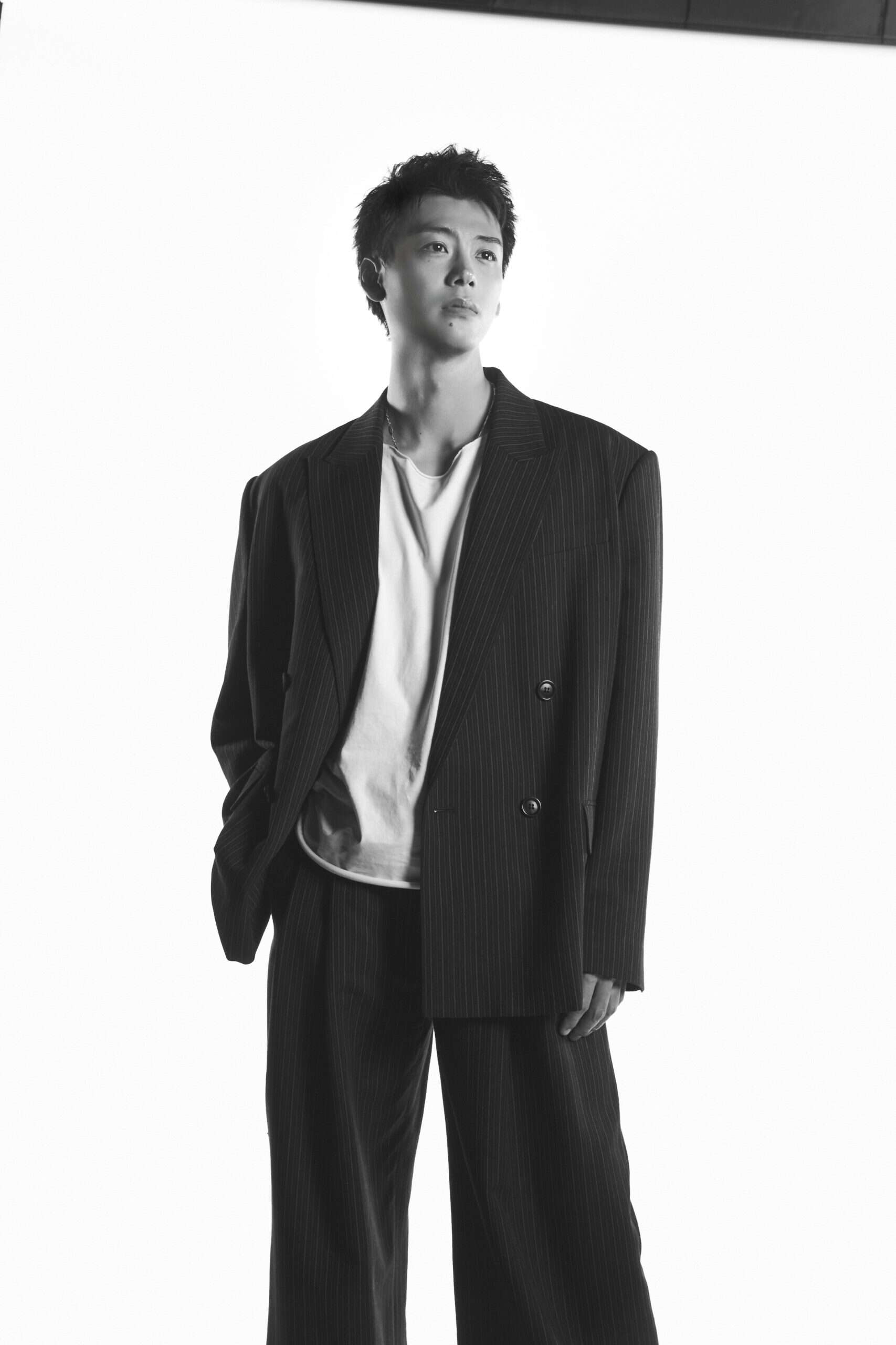 衣装協力:ジャケット ¥149,600、パンツ ¥82,500/Juun.J (コロネット )、Tシャツ ¥25,300/GIORGIO BRATO (コロネット)