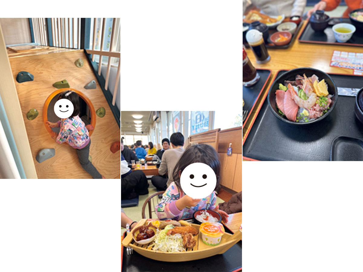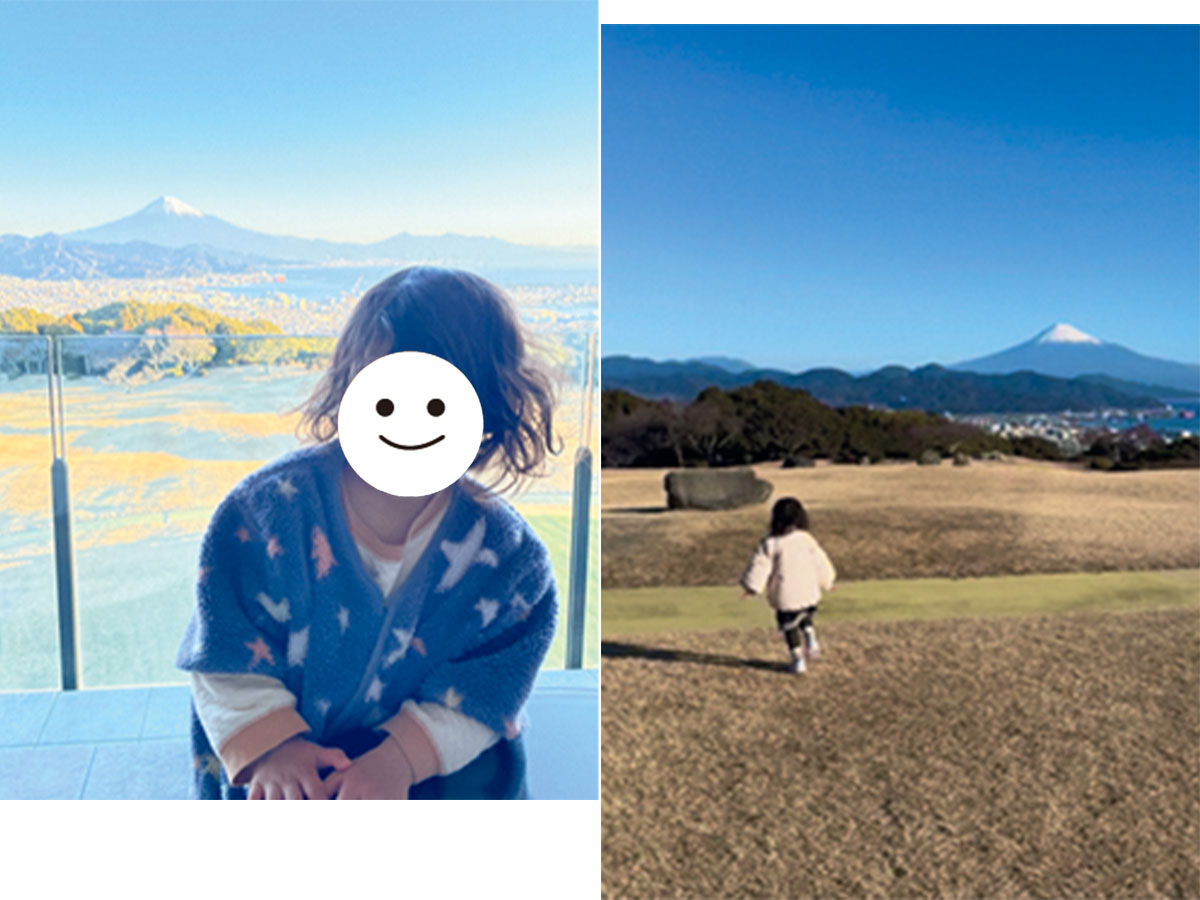 「3歳になったばかりの娘との車旅は、行き帰りにランチや思いきり体を動かせる場所へこまめに立ち寄るのが、退屈を防ぎ家族みんながご機嫌でいられる我が家流のコツ。今回は検索してはじめて訪れた静岡駅近くの『KIDS PARK X』が大正解。娘は木の玩具に夢中。小学生まで楽しめそうなアスレチックや赤ちゃん用スペースも充実。見守りスタッフがいる安心感も魅力でした。ホテルでは広場で遊んでから、毎回フレンチのコースへ。キッズメニューもあり気負わず過ごせます。畳の客室は子連れにおすすめ。友人家族と泊まったときはそこで飲み直したことも。夏は芝生広場で花火やビニールプール遊びなどのイベントもやっていて、それも楽しいんです。帰りは久能山で石垣いちご狩り。娘も私もたくさんいただき、春の思い出になりました」