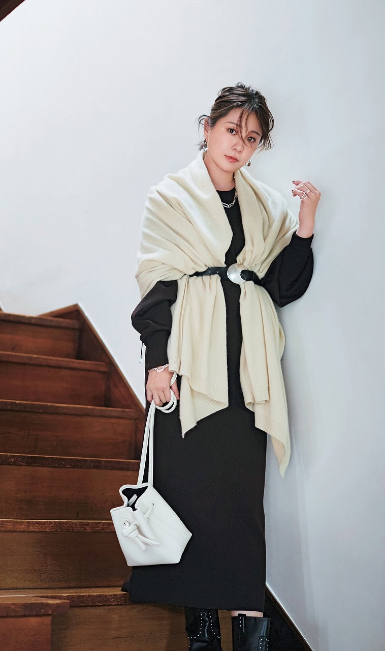 サイズ展開の豊富なブランドがおすすめ。特にマシュマロさんには、やせ見えも叶うPLSTがいいですね!そして、Sサイズさんにもマシュマロさんにも共通して意識したのは、”Iライン”でスタイルアップが叶うということ。Sサイズさんには、上下の境界線を曖昧にすること、マシュマロさんには縦ラインを作ることを考えてアイテムをチョイスしました。