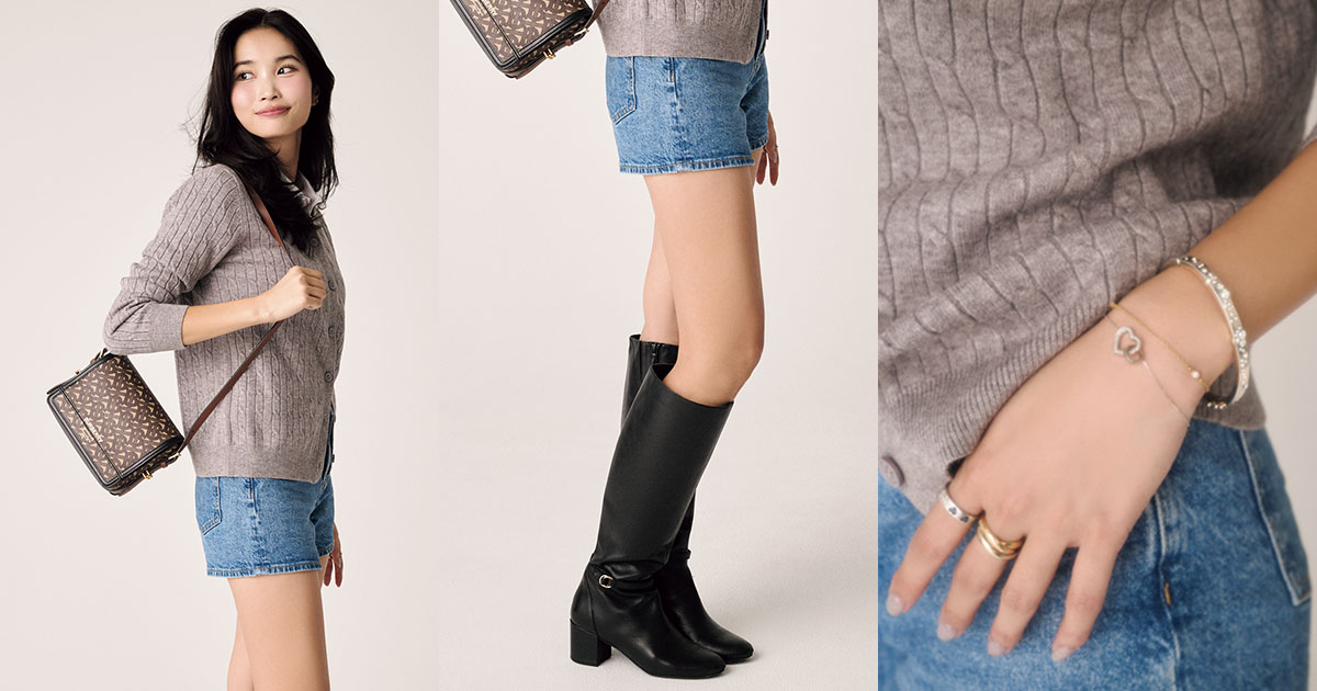 冬のオールホワイトコーデは、同じ色味でまとめるからこそ、単調に見えないように、ジレで奥行き感をプラスしたり、素材感のあるボアアウターでメリハリをつけたコーデに。メリノリブタートルのオフホワイトは、温かみのあるクリームがかった色味で、他のホワイトアイテムともマッチしたので購入しました。バッグは大きいドットが特徴のバケットバッグを合わせて、黒ながら重くなりすぎないよう意識したのもポイントです。