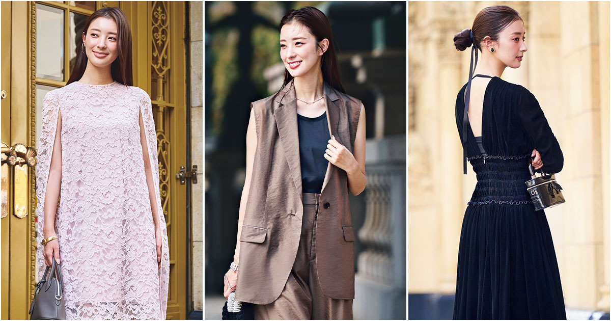 オフィシャルなシーンで重要になってくるのが好感度。上品で洗練された印象をもたらすのがヌーディなワントーンメイク。ツヤと透明感を高めるベースづくりからスタートさせ、生き生きとした肌に整えておくこと。あくまで自然な陰影や煌めきを効果的に効かせることで、嫌味のない華やかさが加味されます。マスカラは黒ではなくブラウンを選び、アイカラーとなじませて。