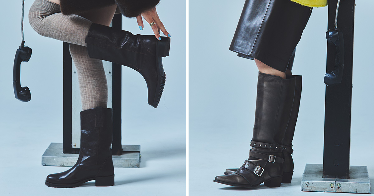 コート/ZAPA (ZAPA Paris)、ワンピース/STELLA McCARTNEY、ブーツ/HILLS AVENUE、バッグ/ADAM ET ROPE、イヤリング・ネックレス/Magnolia
