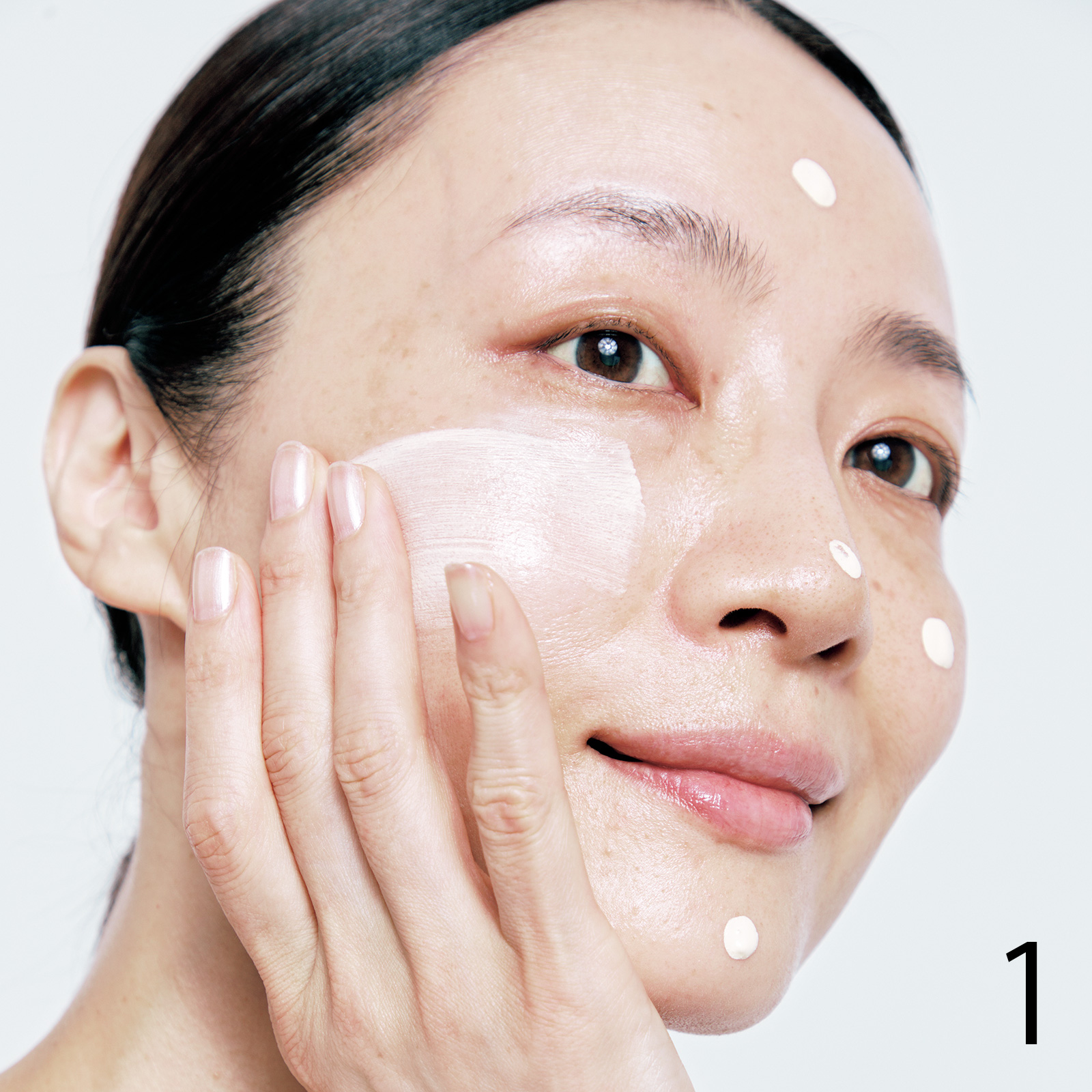 「CLASSY.の撮影なのでキレイめ×ヘルシーなイメージのコーデにしました。春夏は明るく爽やかな色を着たくて、インサイレンスのカーディガンをユニクロの白インナーに重ねて、ボトムスはカーブシルエットと重くないグレーが絶妙なH BEAUTY & YOUTHのパンツを合わせました」