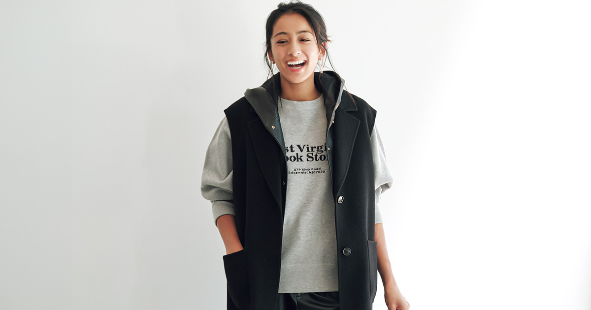 【衣装クレジット】ジャケット¥24,970パンツ¥25,960(ともにICB/オンワード樫山 お客様相談室)ノースリーブニット¥22,000(ロエフ/エイチ ビューティー&ユース)バッグ¥48,400(オソイ フォー ユナイテッドアローズ/ユナイテッドアローズ 渋谷スクランブルスクエア店)パンプス¥13,970(ビューティー&ユース/ビューティー&ユース ユナイテッドアローズ 丸の内店)サングラス¥38,500サングラスケース¥26,400(ともにブラン/ライト)ピアス¥14,080(バルブス/ZUTTOHOLIC)ネックレス¥13,200(ココシュニック オンキッチュ/ココシュニック)ブレスレット¥8,250(ココシュニック オンキッチュ/ココシュニック)