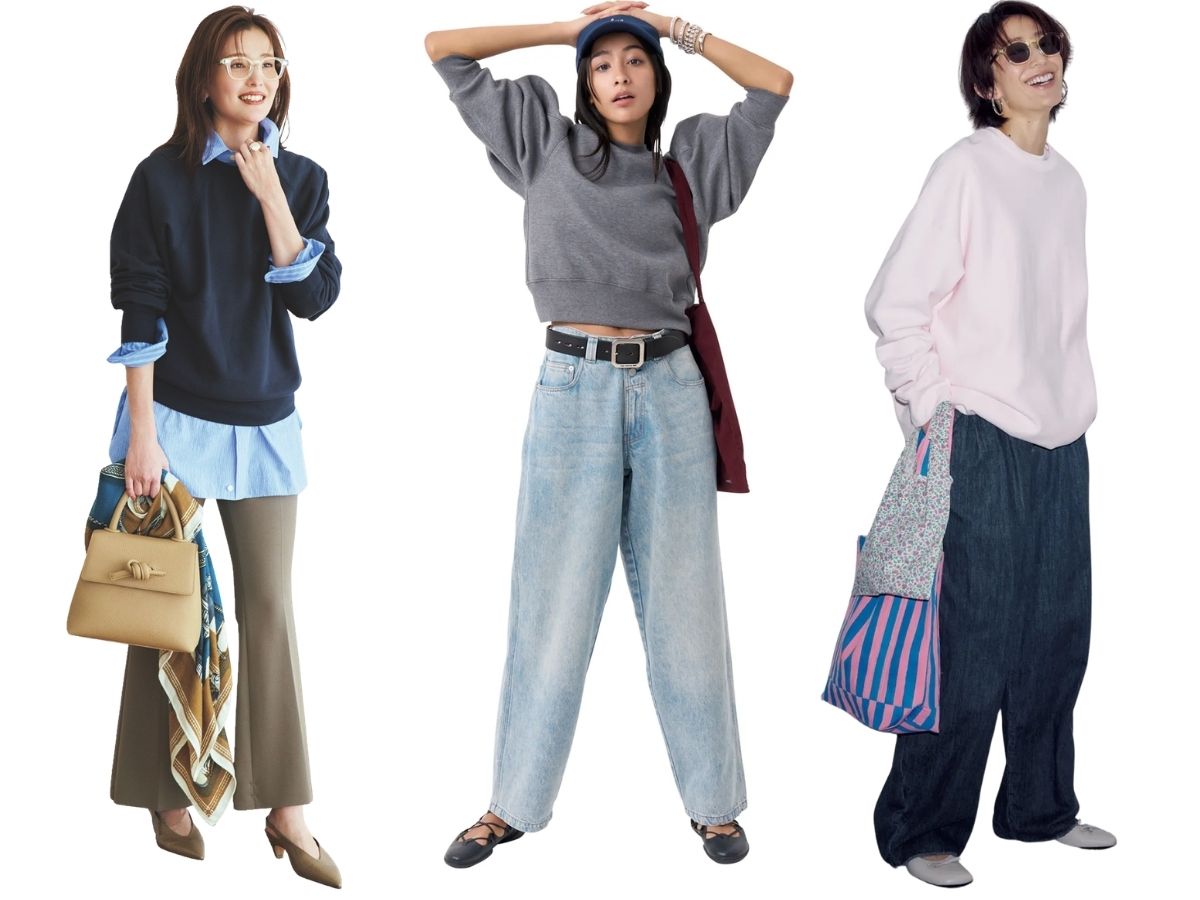 旬のスウェットボトムはストレートや裾広がりデザインでエレガントに