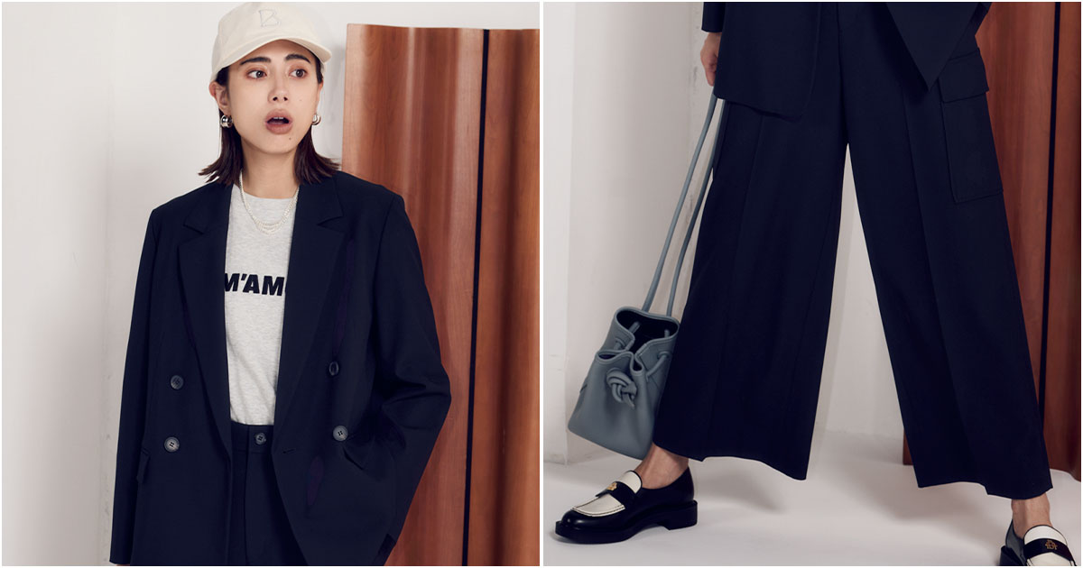 ジャケット¥66,000(オブリオ)パンツ¥16,500(サロン アダム エ ロペ/ジュンカスタマーセンター)バッグ¥35,200(FAVORITE SUKINAMONO/フランドルカスタマーサービス)パンプス¥46,200(PIPPICHIC/ユナイテッドアローズ 渋谷スクランブルスクエア店)ブレスレット¥47,300(Pearl for Life/ロードス)
